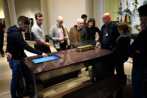 The MEMO partners during the visit of the original exemplar of the Pascaline by B. Pascal (ca. 1650) at the Mathematisch-Physikalischer Salon (Staatliche Kunstsammlungen Dresden).
